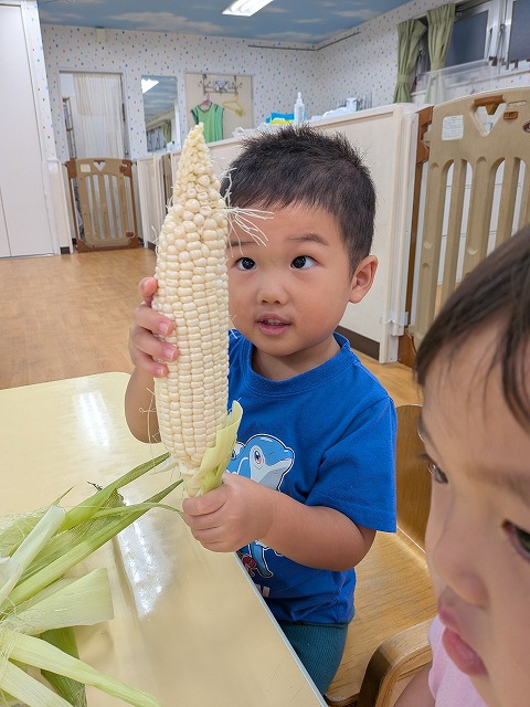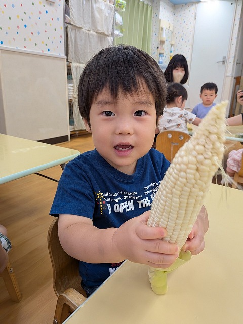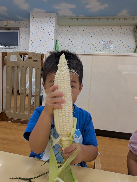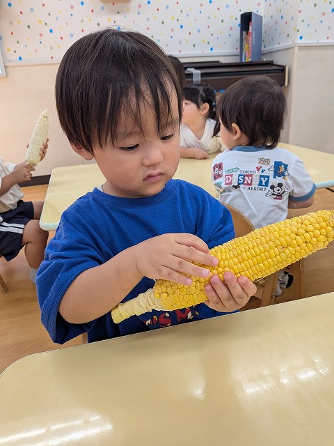とうもろこしのヒゲが気になりすぎて、ずっと格闘している姿も可愛らしいです(笑)