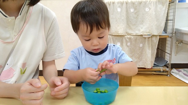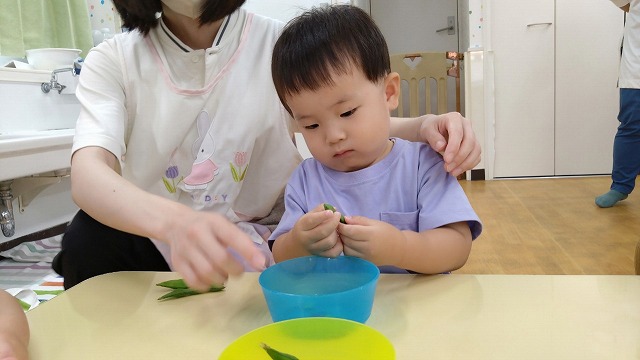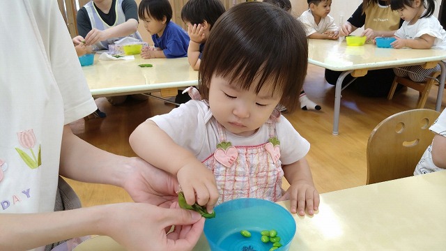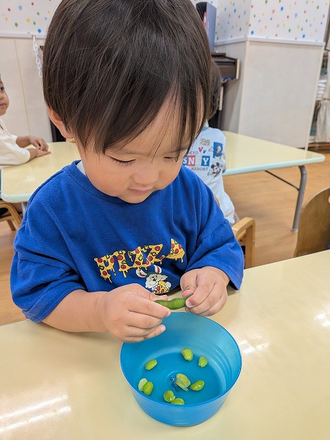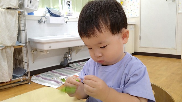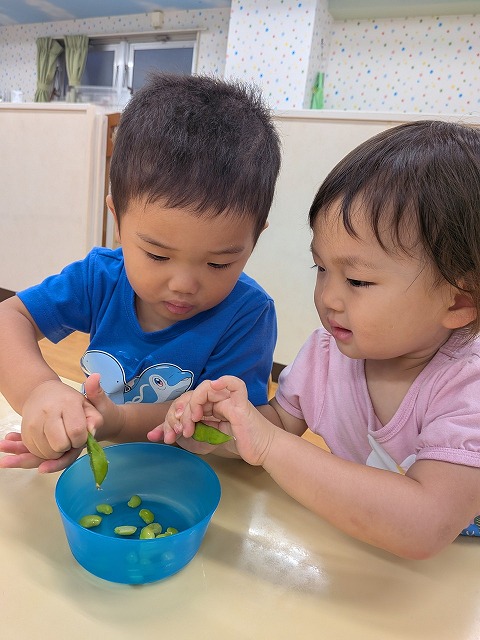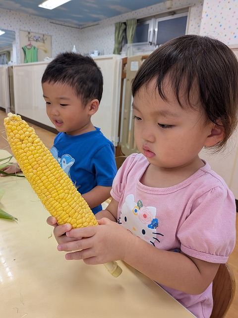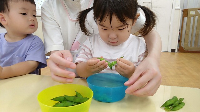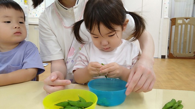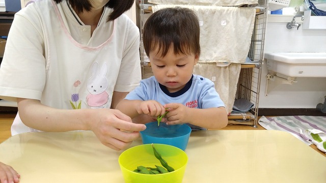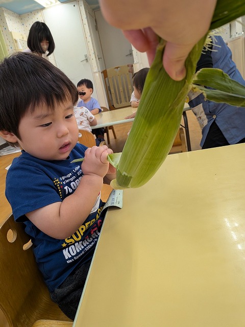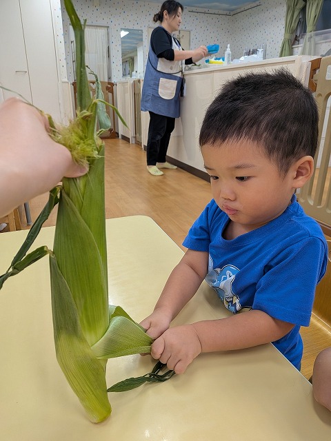 とうもろこしの皮をむいたり、枝豆のサヤから豆を出したり・・・