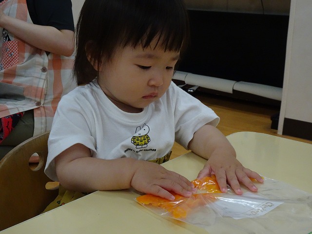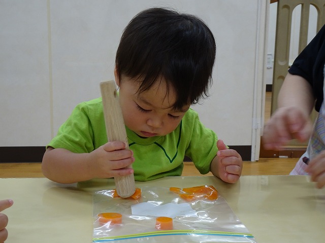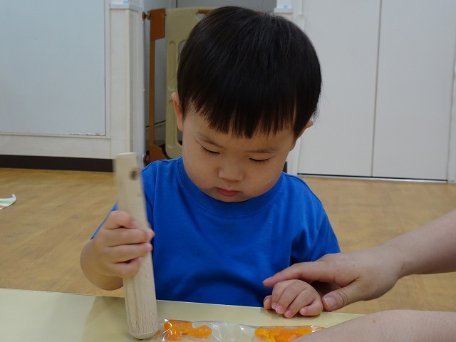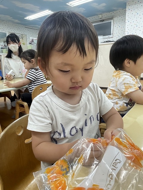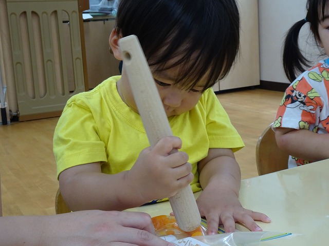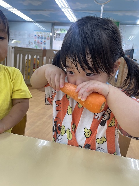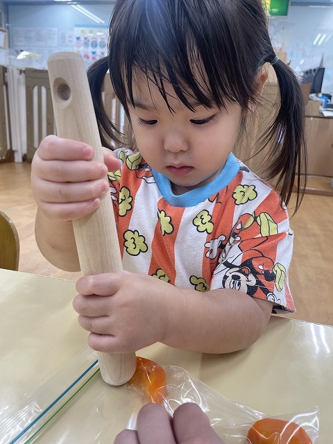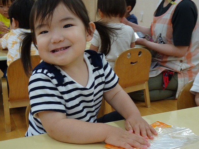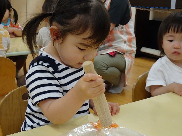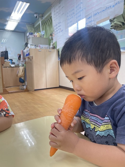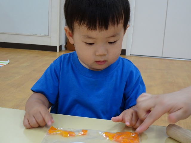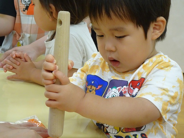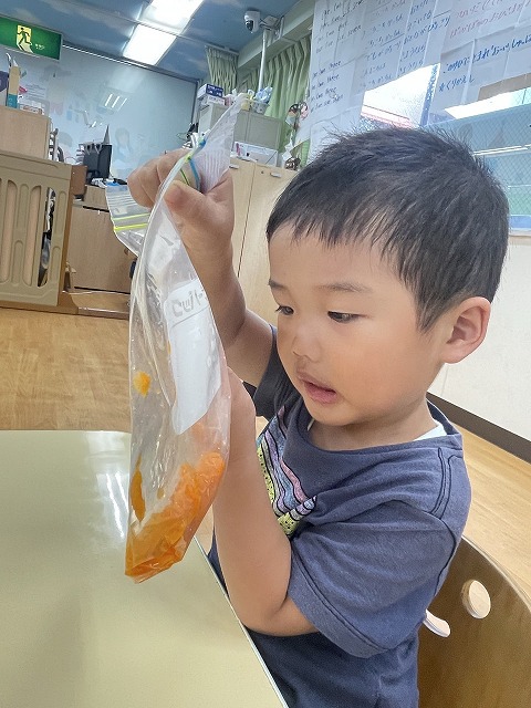 しらすとにんじんのごはんおやきを作りました☆ 2025.7.29 [食育・クッキング] 今回のクッキングでは、しらすとにんじんをつかって、ごはんおやきを作りました。 本物のにんじんを持って、感触や香りを感じたあと、火を通したにんじんを、袋の上から手や麵棒でつぶしてもらいました。 袋の中で逃げちゃうにんじんを麺棒で追いかけ、つぶそうとしては逃げられ・・・ どうやったら逃げないかを考えて、やってみて・・・という姿も見られましたよ! 考える力、やってみる力、出来た!の気持ちが、たくさん育ちますように! 海の世界で運動遊び! 【安全計画策定内容についてのご…